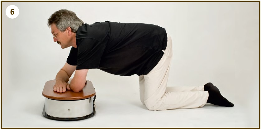 Встаньте на четвереньки, коліна поставте чітко під таз, упріться передпліччям в Шуман 3D-плату і розташуйте їх вздовж плати. Слідкуйте за тим, щоб спина залишалася прямою. Контролюйте дихання, зосередьтеся на почутті розслабленості та легкості.